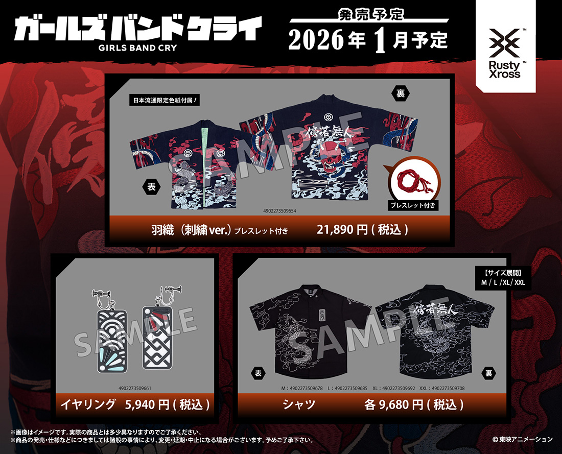 さらに、同じステージ衣装をモチーフにした「傍若無人」シャツや、仁菜が身に着けていたイヤリングを再現した商品も同時展開。