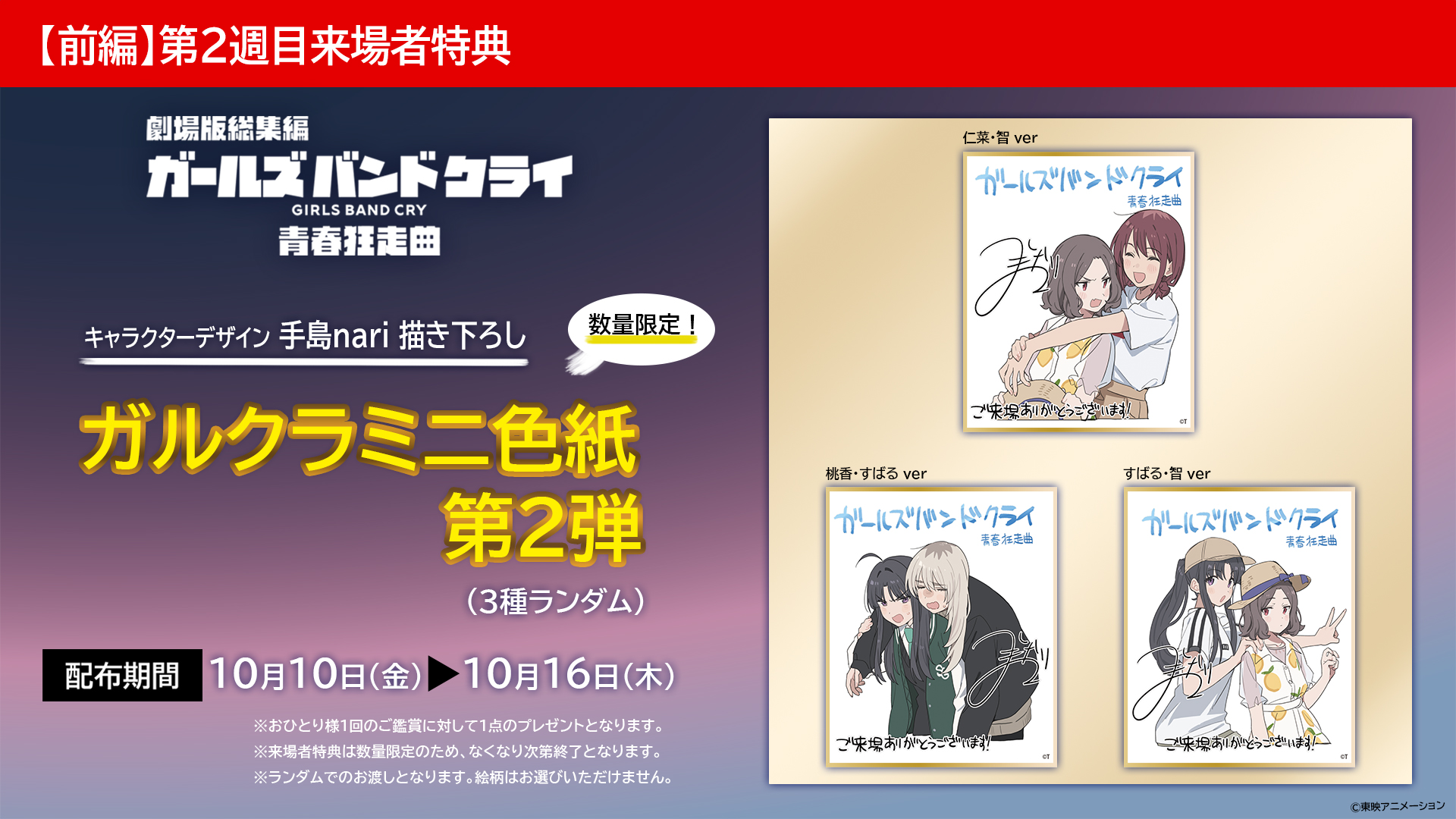 第2週目来場者特典は手島nari描き下ろしガルクラミニ色紙第2弾(3種ランダム)に決定!