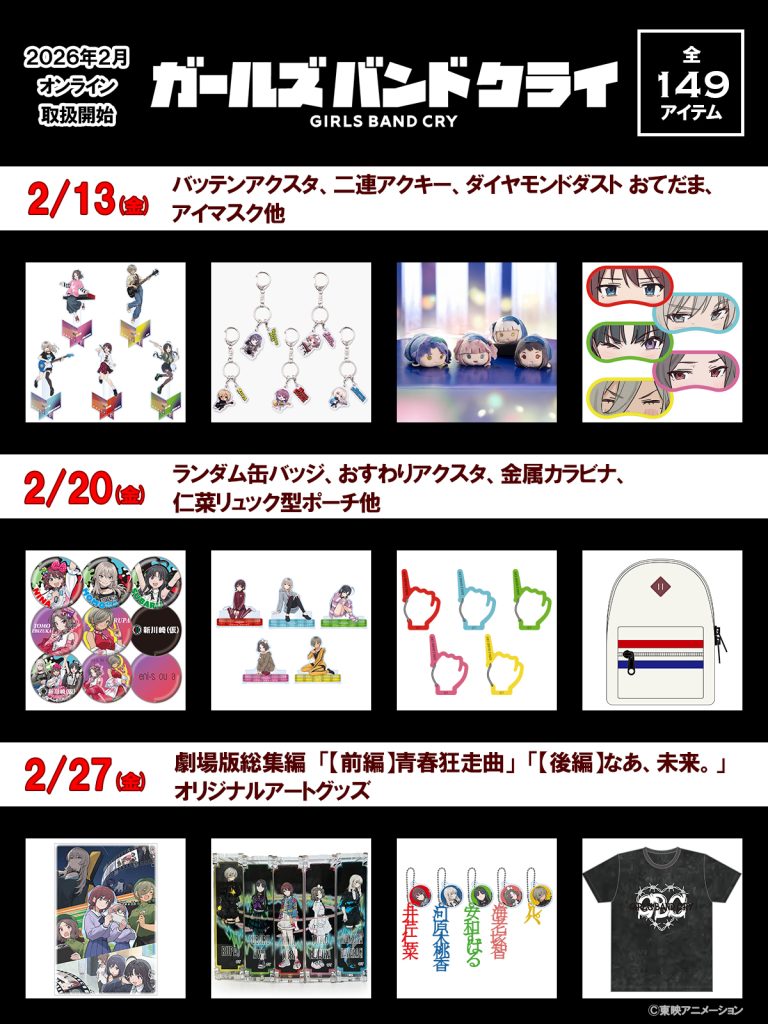 公式オンラインショップ『東映アニメーションオフィシャルストア』にて2/13(金)/2/20(金)/2/27(金)とガールズバンドクライグッズ拡充いたします!